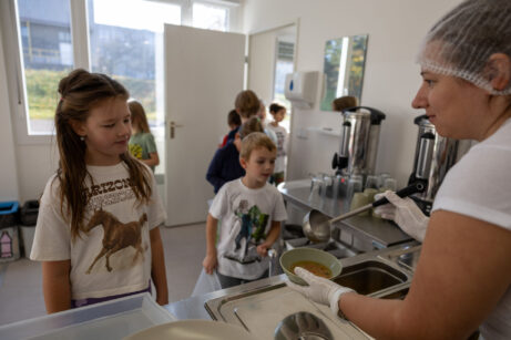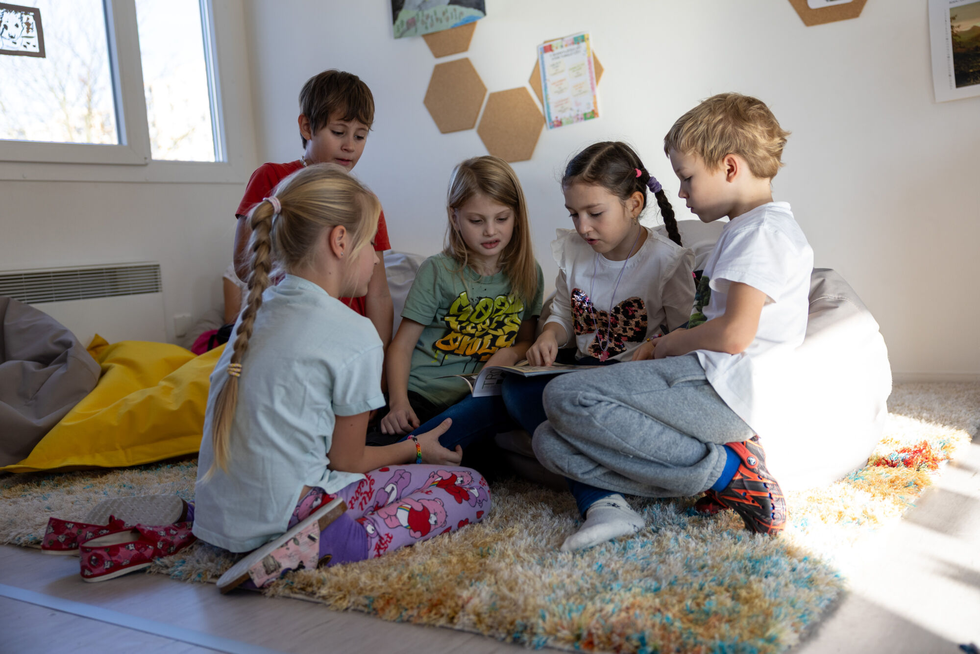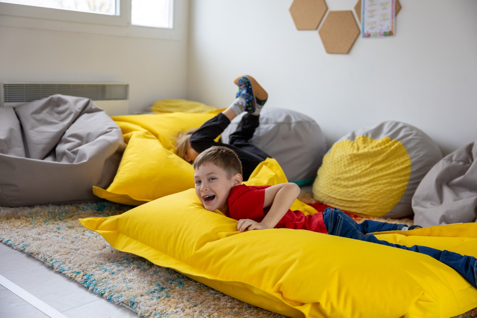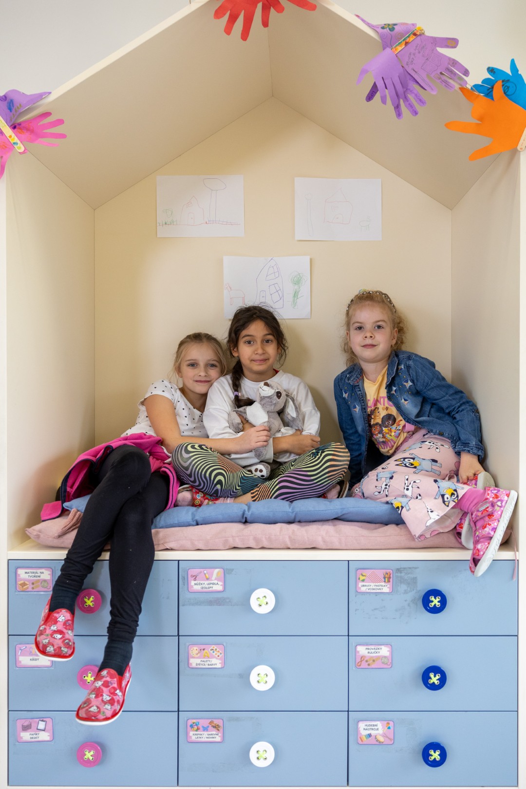 V každé místnosti školy máme relaxační koutky. Oběd vydáváme v naší jídelně.