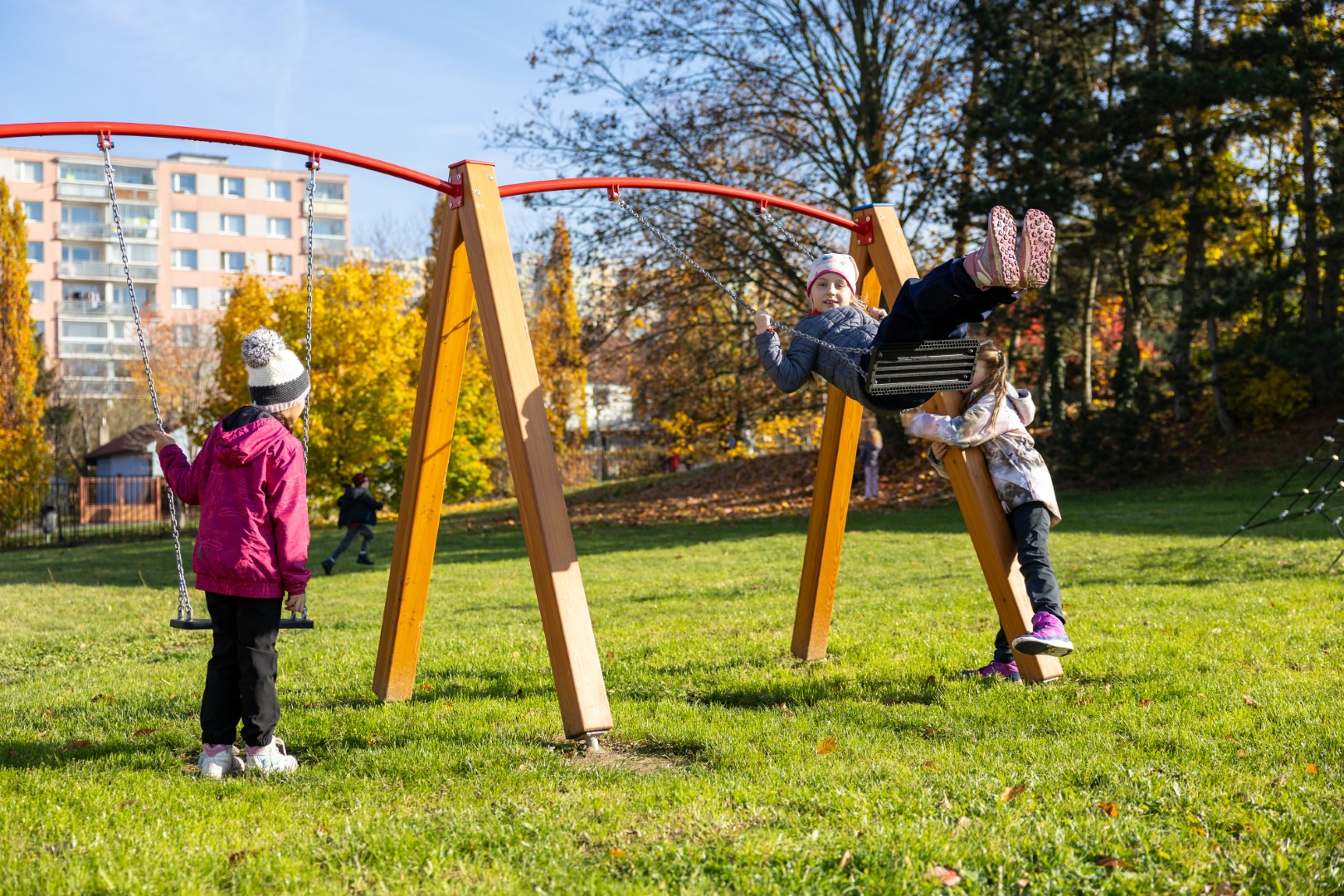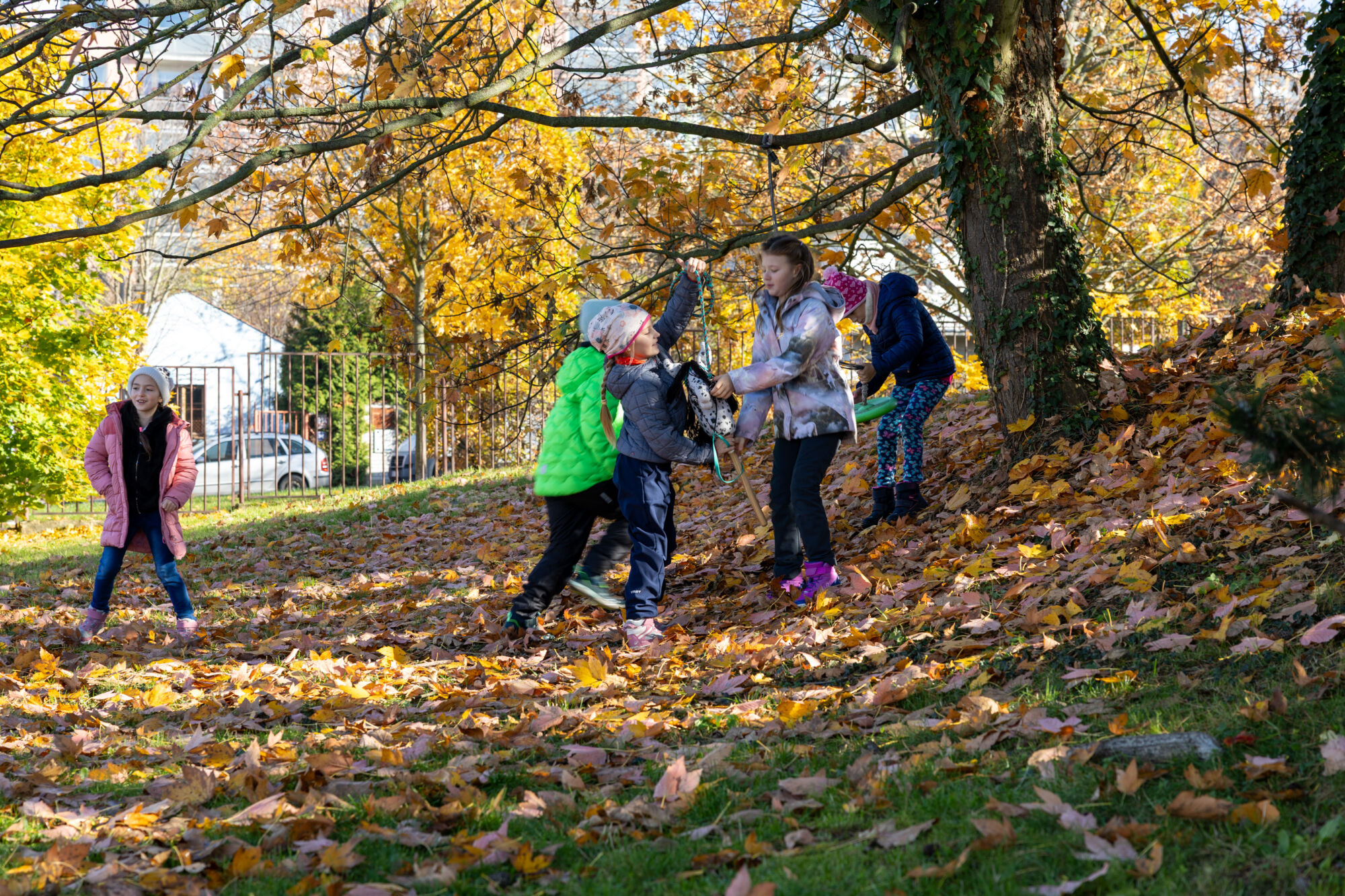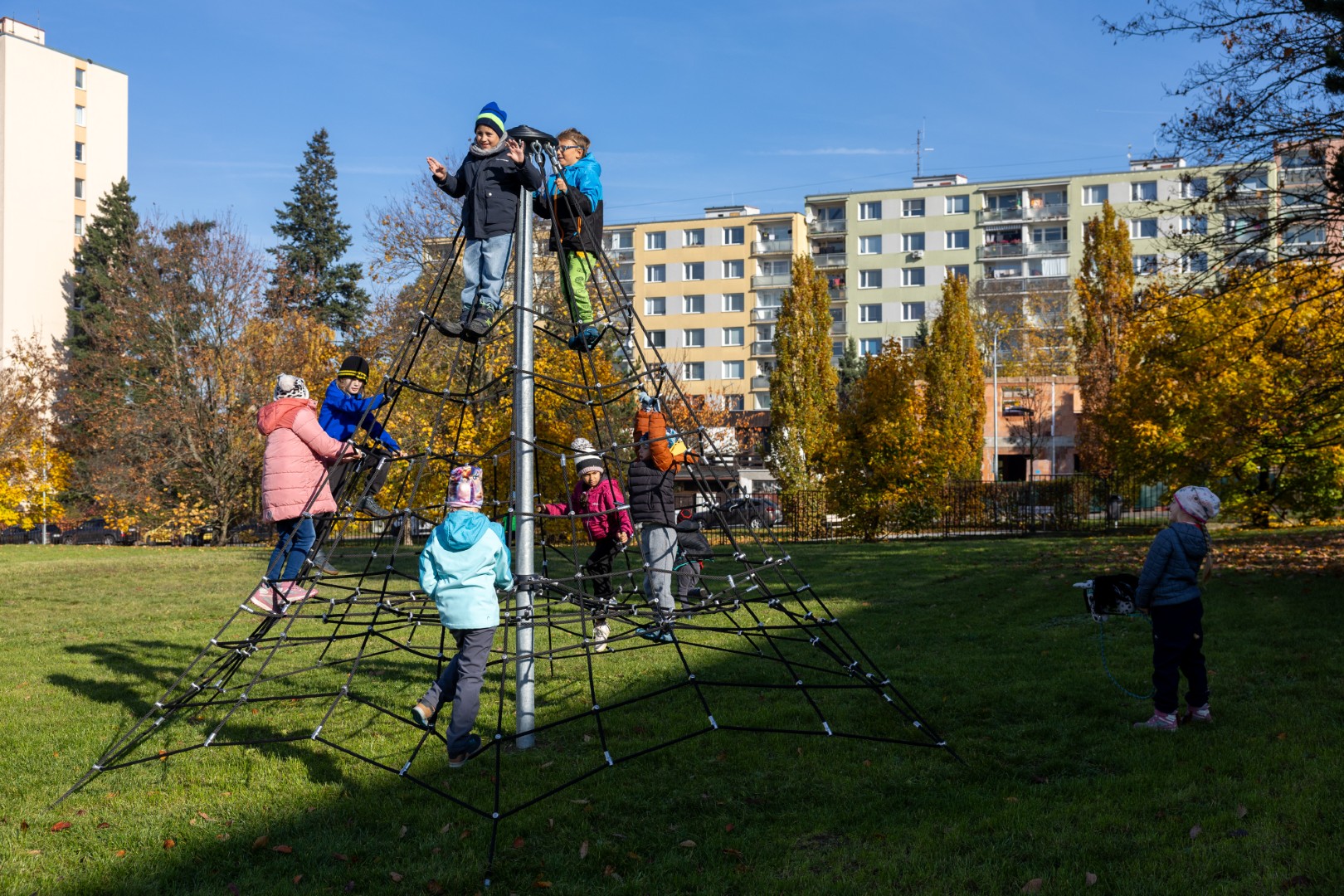 Škola má k dispozici velkou zahradu, který skýtá spoustu možností pro hraní